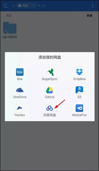 2、然后点击右上角的“新建”按钮,选择百度网盘并进行登录操作。