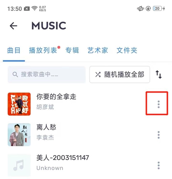 2、然后点击歌曲旁边的三个点;