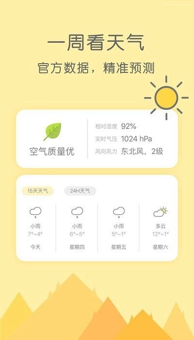 1、米丫天气是一款掌上天气预报应用,它能为用户提供当天的实时气温信息和空气质量数据。