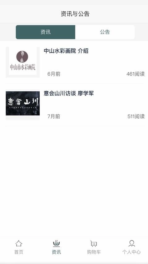 资讯和公告及时更新推送,便于日常查看了解艺术品;