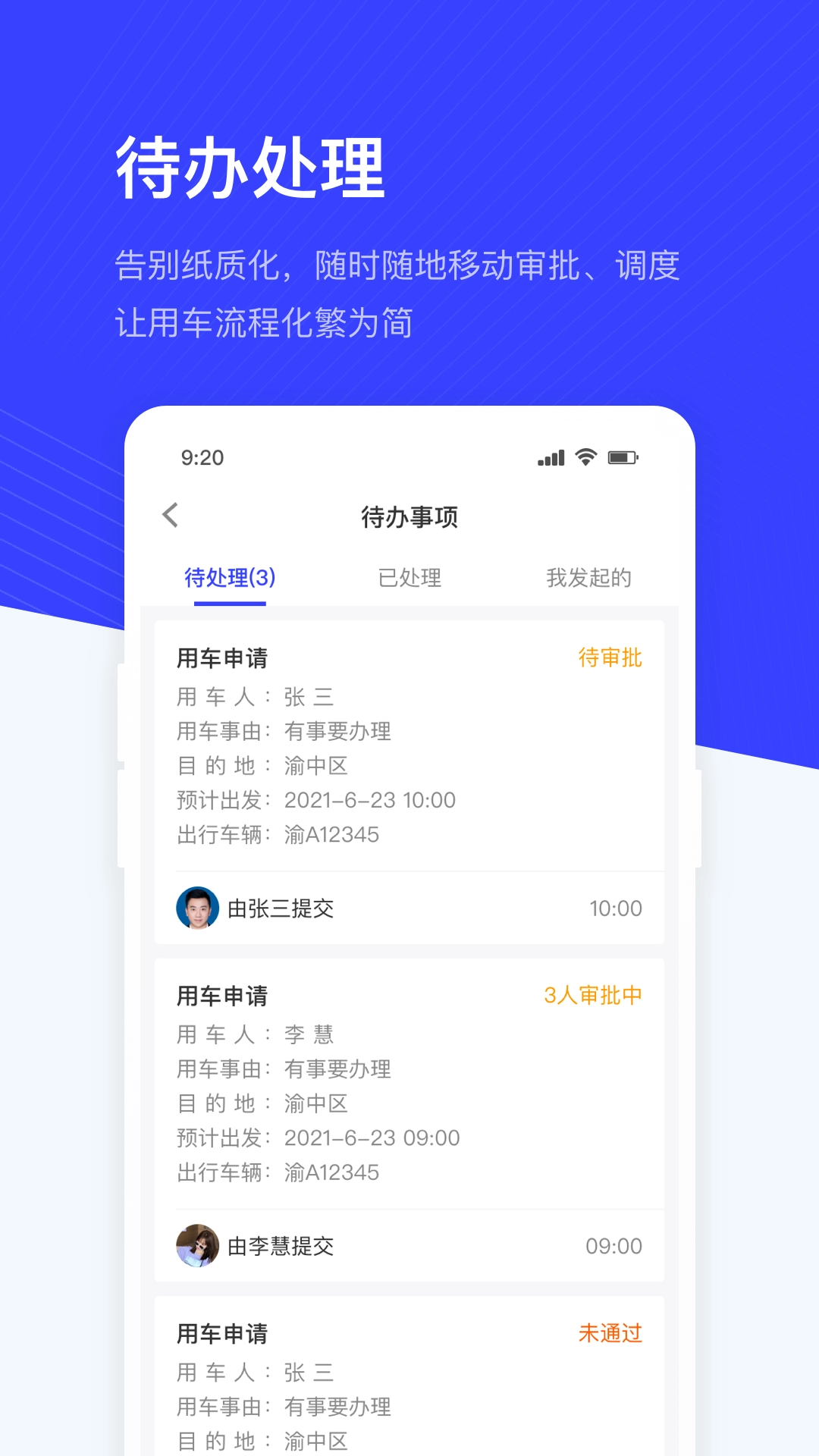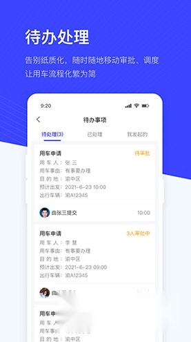 5、用车调度效率更高,借助智能算法调配空闲车辆,申请、审批与派车流程快速且高效;