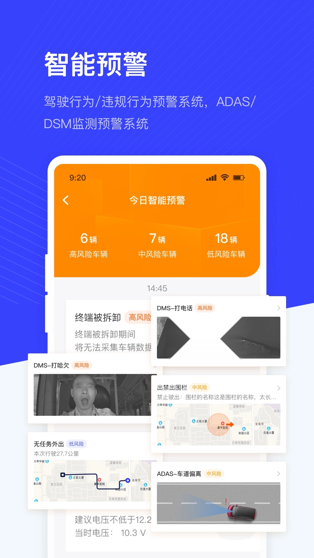 4、智能预警,驾驶行为预警系统、违规行为预警系统、ADAS行车预警系统、DSM驾驶人监测系统;