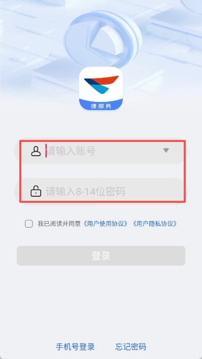 3、进入登录界面后,在相应的输入框中填写自己的员工账号与密码。