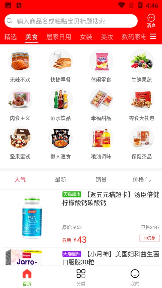 1、各类商品资源都极为丰富,涵盖美食、居家日用、女装、美妆、数码家电等多种品类。