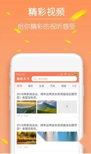 趣看天下是一款资讯阅读服务软件,拥有娱乐、养生、情感、励志、奇闻、美食、三农、育儿、搞笑、历史、生活、旅行、汽车、时尚、环球、星座、科技、财经、收藏、故事等20多个频道。