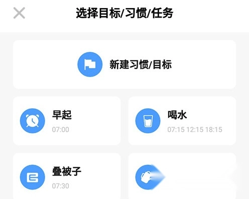 2、点击习惯创建按钮,这里提供了多个可选择创建的习惯,你也可以自行新建习惯和目标。