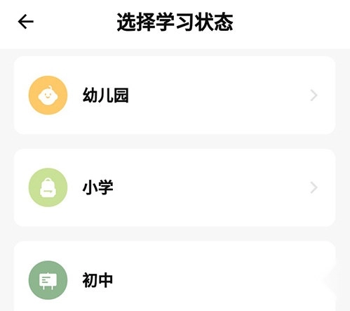 2、选择当前的学习状态,从幼儿园到工作都有;
