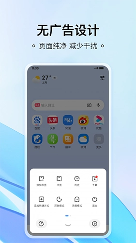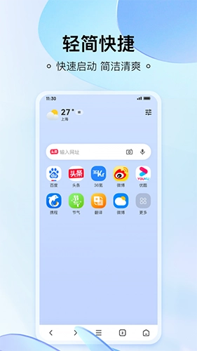 这款浏览器不仅具备极简且出色的服务,还支持一站式搜索全网优质、新鲜、热门的内容。它通过整合直达书签、搜索、热榜等功能,让用户能在页面内快速查看更新内容。轻量的设计与纯净的风格,使用户可以随时随地轻松浏览,同时还提供语音搜索、无痕浏览、精品小说等多种实用工具,为用户带来更高效的浏览体验。
