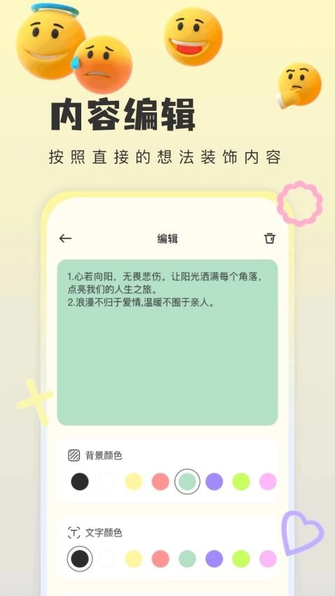1、可以自定义便签内容的背景颜色和文字颜色,让便签更美观且更具个性。