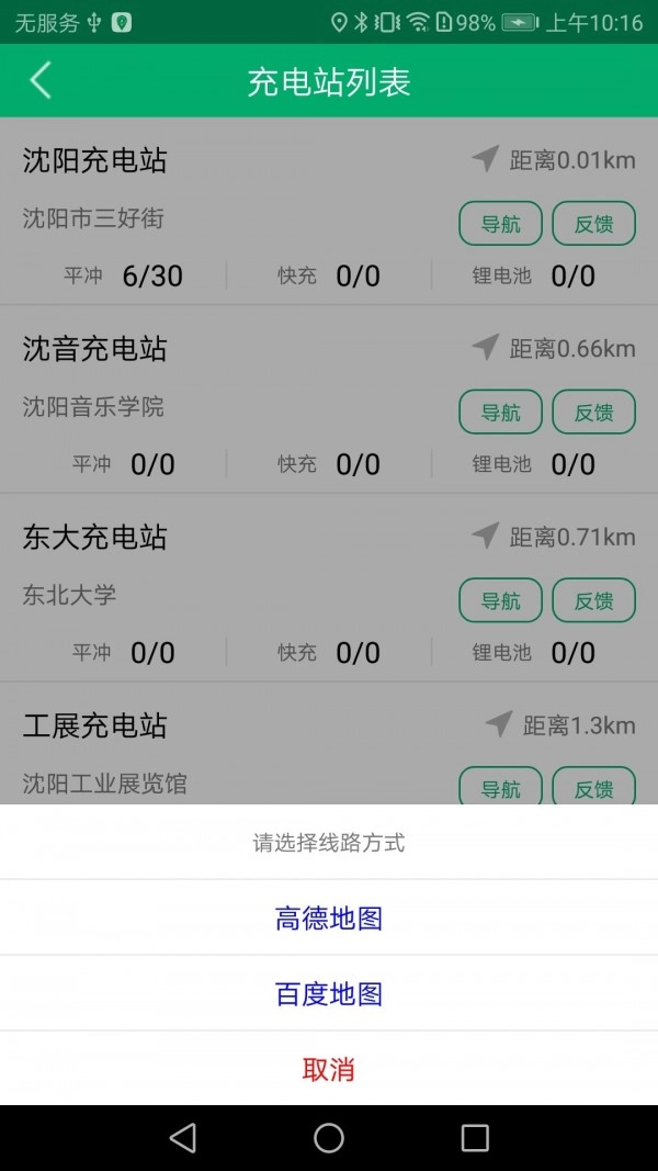 2、具备导航功能,能够查看充电站的距离,还可以一键导航前往。