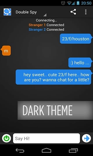 这是一款能和外国友人直接交流的聊天软件,用户可以通过它结识形形色色的朋友,支持实时对话,操作十分便捷。系统会随机为用户匹配陌生人,大家可以无拘无束地聊天。软件采用完全匿名模式,用户完全不必有任何顾虑——口音标不标准、语法对不对、发音准不准、拼写有没有错,都无关紧要;对方的身份、聊天的内容有没有忌讳,也都不成问题。