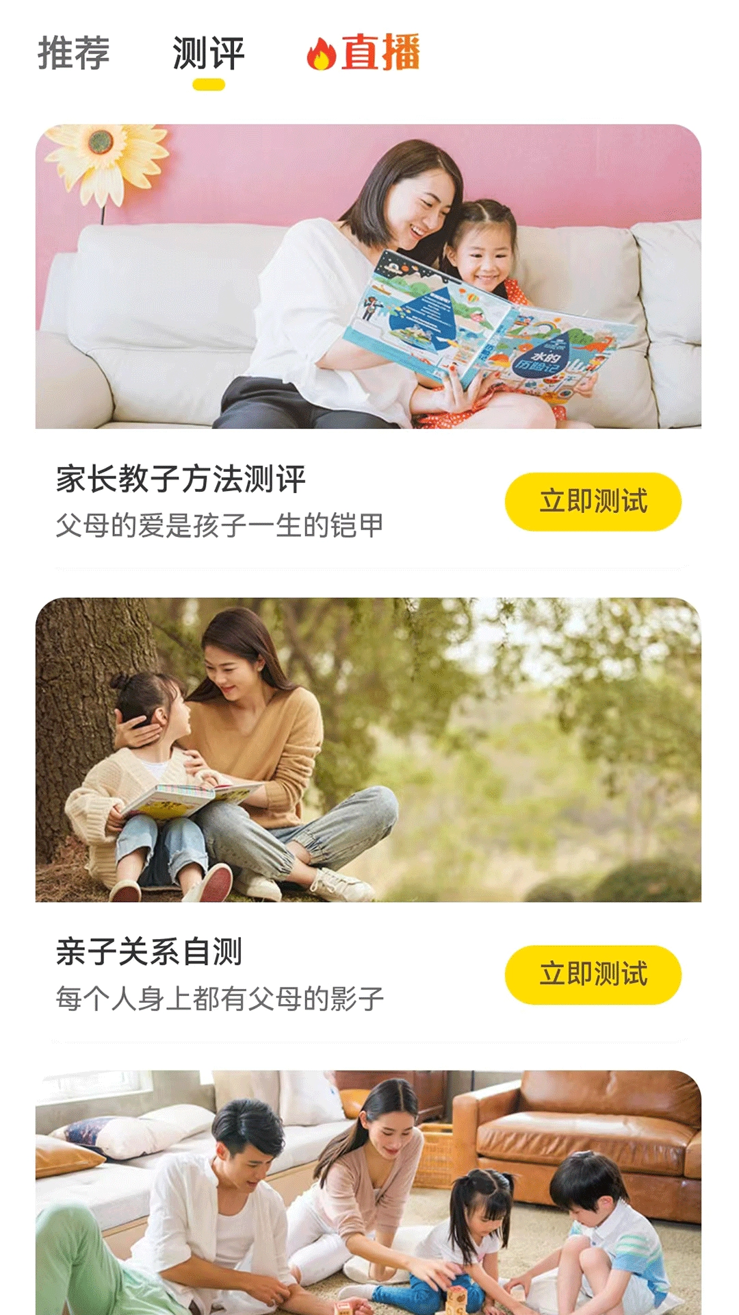 测评组合:平台借助测评组合,对自身家庭教育情况、孩子的身心成长状态以及心理健康状况展开分析