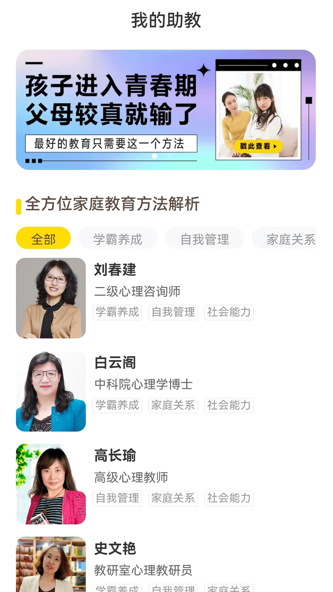 成长规划:围绕教育的9个学段,聚焦家庭教育能力的培育,助力家庭教育与学生能力提升形成良性互动。