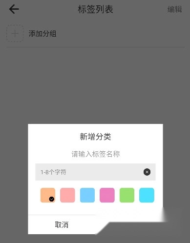 3、点击【编辑】按钮后,选择【添加分组】功能,即可设置新的分类。