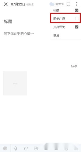 2、勾选【同步广场】,可将日记发表到广场中。