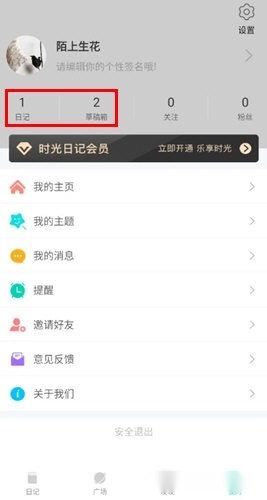 4、进入【我的】页面,既能查看已发表的日记数量,也能在草稿箱里查看未发表的日记。