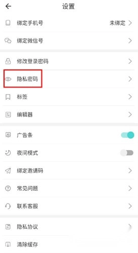 2、点击【隐私密码】,可启用普通密码、手势密码。