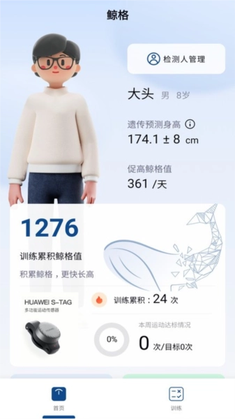 鲸格还具备智能身高预测功能,能够依据孩子的运动数据来推测其未来的身高。