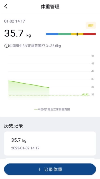 鲸格支持在软件里添加孩子的体重数据,这样家长就能清楚掌握孩子的体重变化情况。