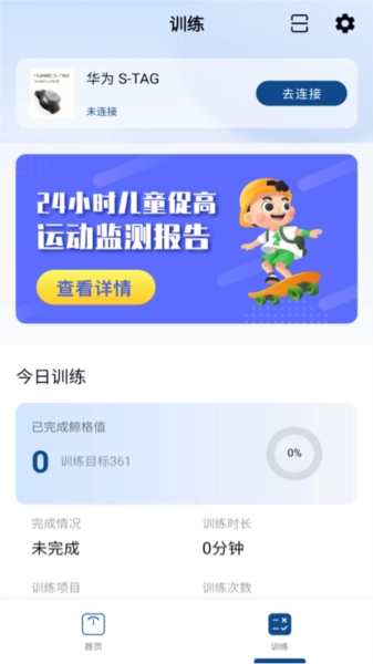 鲸格借助软件即可与脚环设备建立连接,进而记录孩子的各类运动及健康数据。