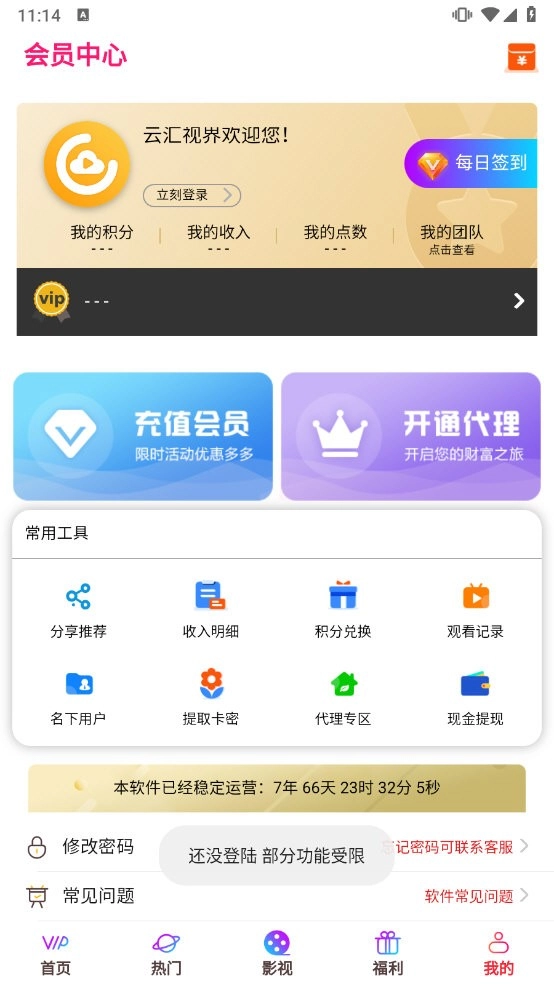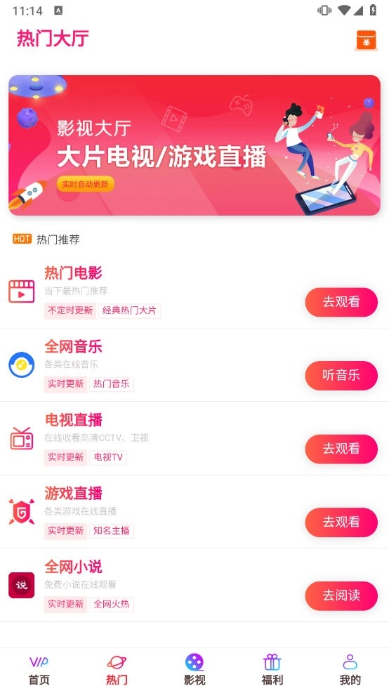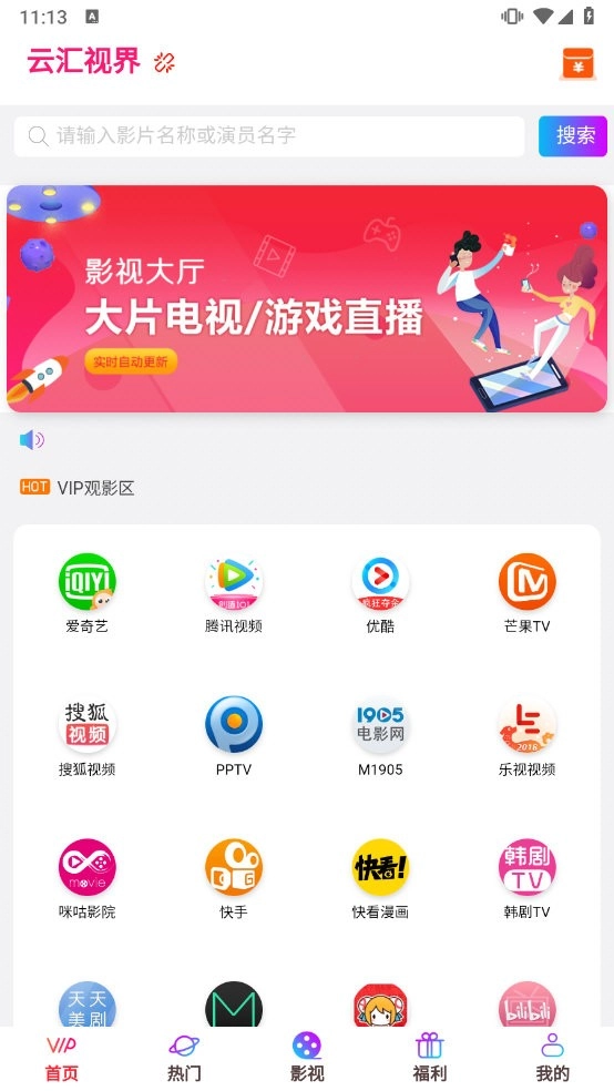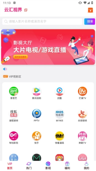 云汇视界具备视频播放、音乐播放、电视直播以及多功能小工具等功能。