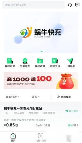 蜗牛快充具备搜索与浏览充电桩信息的功能,这些信息涵盖位置、类型、价格、评价等内容。