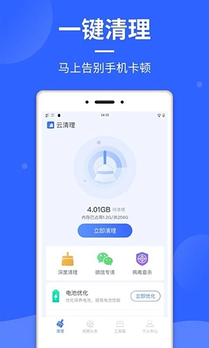 云清理是一款专业的优化工具,为用户提供优质的垃圾清理服务,能有效释放内存空间、优化电池性能,还具备病毒查杀功能,让设备运行更流畅。有需要的朋友欢迎体验。