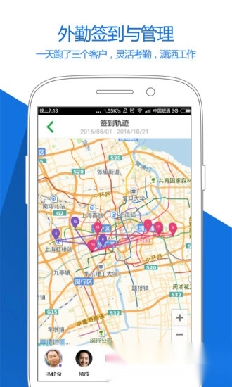 3、随办的考勤签到功能,借助平台即可实现实时定位打卡签到,从而记录每日的出勤情况。
