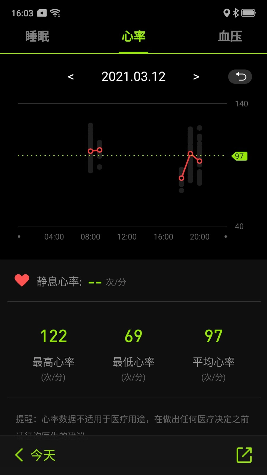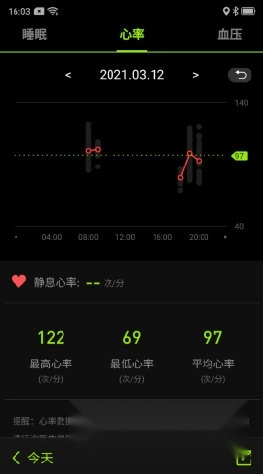 记录每日的心率数据与心率区间,并对周、月平均心率的变化趋势进行统计。