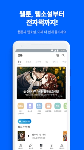 ridibooks韩网是一款韩国的小说漫画阅读应用,它为用户提供了海量热门的小说和漫画资源,具备人性化的阅读模式与高清画质,还支持一键切换听说模式,能解放双眼,带来沉浸式的阅读体验,是大家打发时间的好选择。平台拥有丰富的韩国小说资源,涵盖多种类型,众多知名作家会实时更新连载内容,喜欢韩国作品的读者可以尝试使用。用户还能自定义界面设置,让阅读更轻松。此外,ridibooks的漫画资源也十分丰富,整合了webtoon、novel、books、select等平台的漫画和小说资源,方便用户自由切换。由于韩国多数漫画家都在该平台连载作品,所以想要阅读最齐全韩漫的用户,ridibooks会是不错的选择之一,喜欢这款软件的朋友可别错过啦。