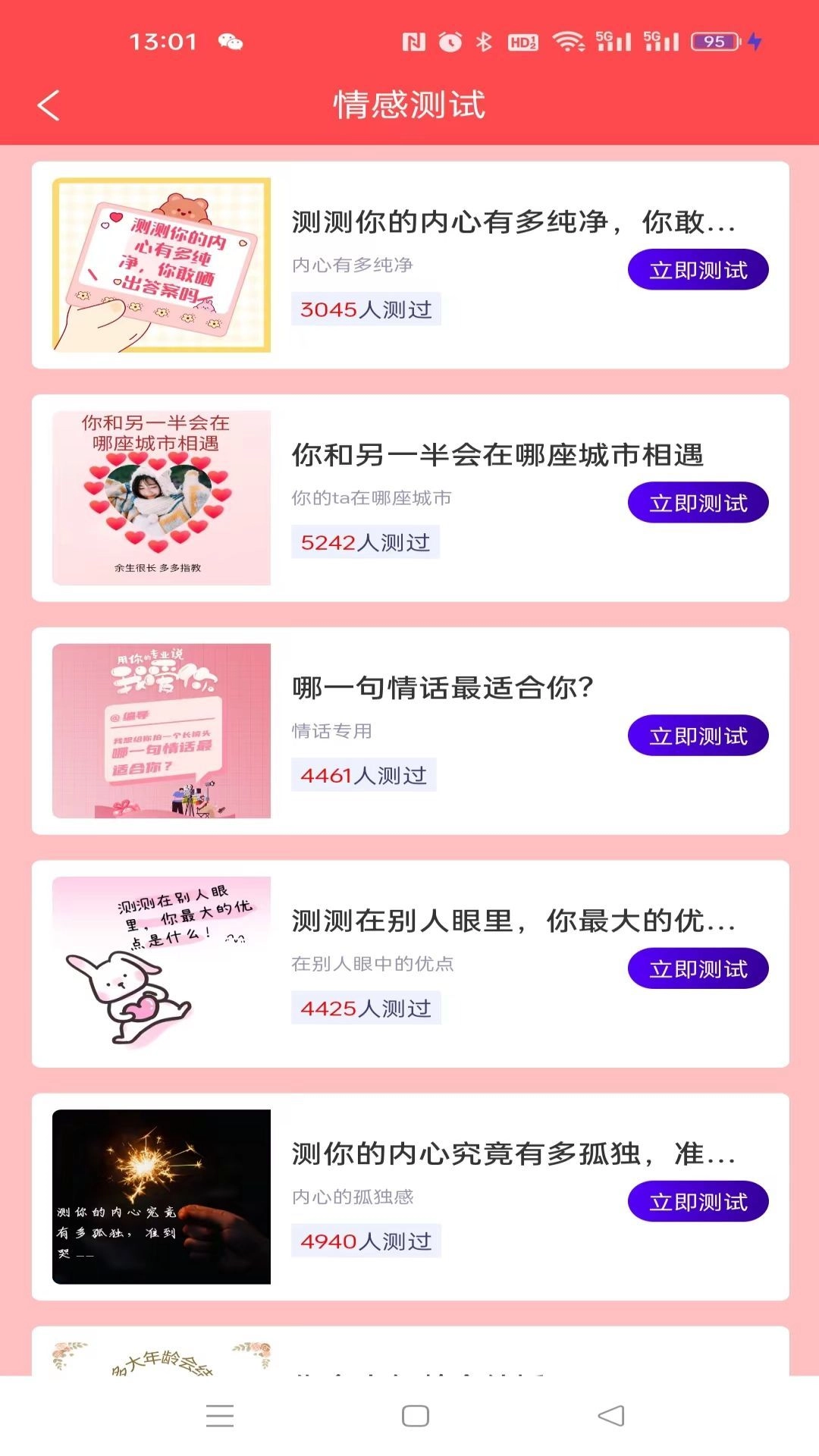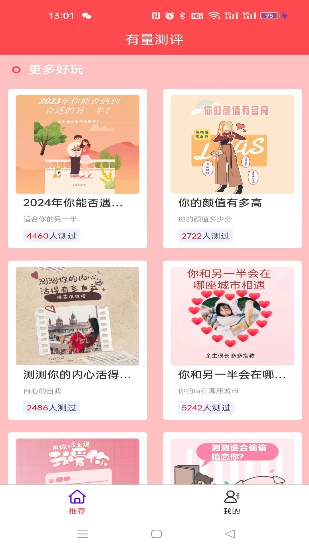 1、丰富多元的测评题目:有量测评配备了种类繁多的测评题目,覆盖情感、人际关系、性格等诸多领域,能够满足用户各方面的需求。