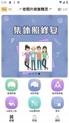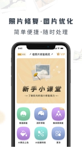 2、登录后进入应用主页,在主页能看到修复精灵老照片的全部功能,大家可依据自身需求挑选合适的工具来使用。