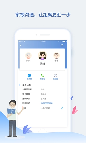 添加家长功能支持将每位学生家长的账号加为好友,方便与家长沟通学生的学习情况。