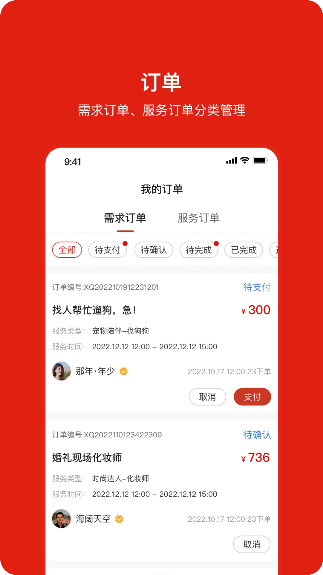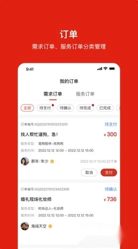 无论是服务订单还是需求订单,都可以在“我的订单”页面进行管理。
