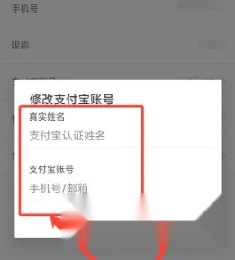 进入支付宝账号修改界面,填写真实姓名与支付宝账号后,点击【确定】按钮。