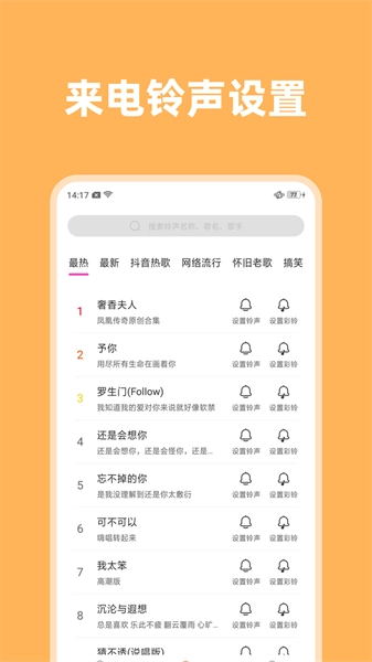 2、来电铃声与视频秀保持同步更新,让您始终拥有丰富选择,进一步提升使用体验。