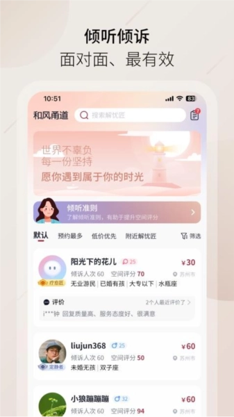 和风甬道是一款优质的心理咨询服务软件,不仅操作简单,而且安全性高。借助加密技术,用户能够记录情感日记、开展心理咨询等多种灵活的沟通活动。该软件提供了丰富的心理服务,适合各个年龄段的用户使用。用户可以选择文字、语音、视频等方式,随时在线获取专业的心理咨询服务,从而帮助他们更好地了解自我和他人,养成健康的心理习惯。