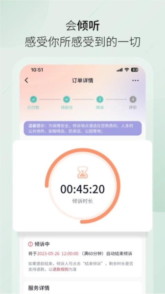 1、专业心理咨询:配备专业心理咨询师提供在线沟通服务,您可随时通过文字、语音、视频等多种方式与咨询师交流。