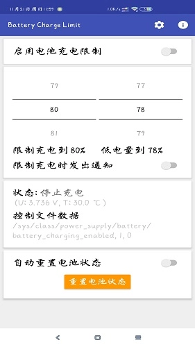 该应用程序的工作原理是:当设备插入并开始充电后,若充电量低于最大阈值,充电会停止;一旦设备被拔出或充电量达到最大阈值,充电则会完全停止。