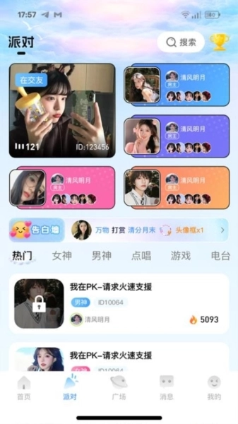 将各种语音派对房间推荐,用户可以发现感兴趣的交友房间;
