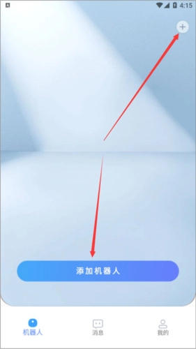 1、通过本站进入软件后,注册账号并登录,在“机器人”页面点击“添加机器人”按钮或右上角的“+”按钮,即可开始添加机器人;
