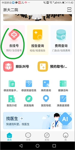 1、打开并登陆浙大二院,进入首页点击“去挂号”