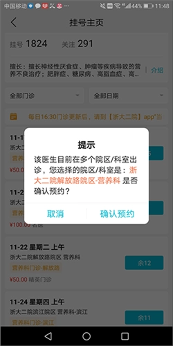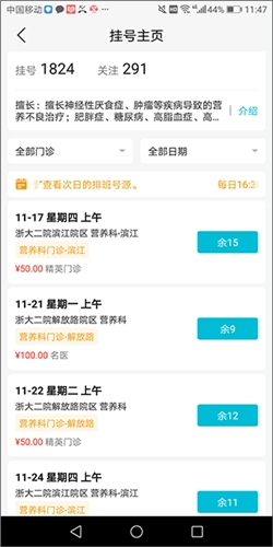 浙大二院支持用户在客户端依据时间段、科室和专家信息,自主完成门诊预约操作。