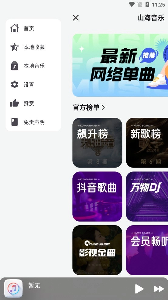 查看热门榜单:山海音乐设有热门音乐榜单,能让你迅速了解当下的流行趋势。