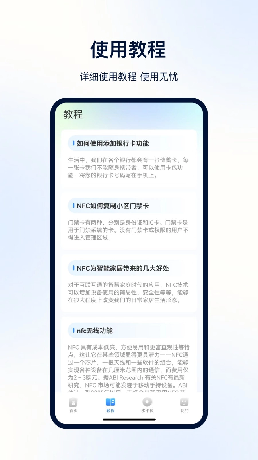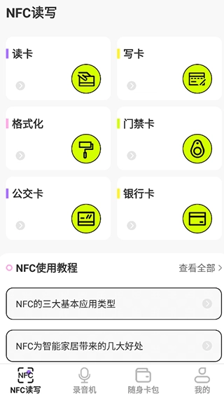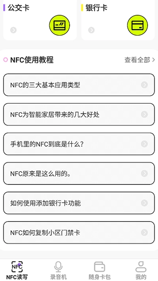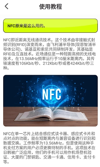 3、向下滑动页面,在“NFC读写”板块中能找到各类科普教程。
