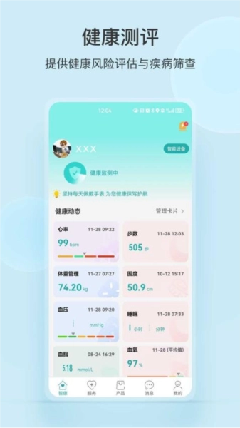 多元化健康管理功能:除了基础的健康监测外,还新增了体重测评等功能,进一步丰富健康管理体验。