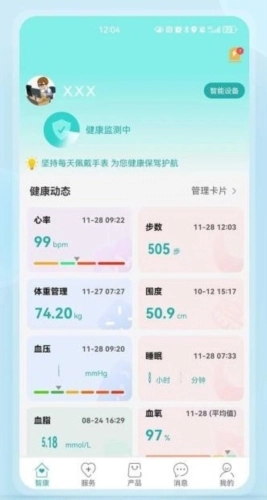 对各项健康身体指标的动态变化进行监测并展示,方便用户随时查看。