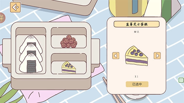 伴侣准备出门上班时,玩家可以为TA制作一份充满心意的便当。点击便当盒的不同位置,就能添加各类食物或者更换便当盒的样式。