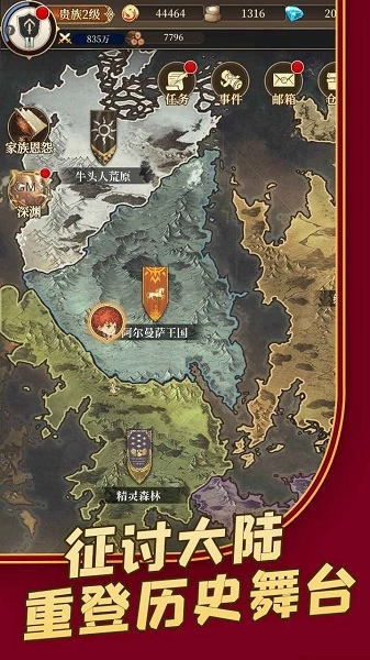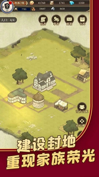 建设封地,重现家族昔日的辉煌。绝大多数资源产出都依赖于封地的建设,所以用心经营自己的庄园是极为关键的一环。族长要持续提升爵位,拓展封地范围,建设家园,吸引更多在外流亡的族人回归,在打理封地的过程中尽情享受经营的乐趣。