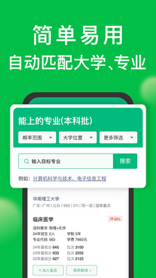 1当用户选定心仪的院校与专业后,软件会通过智能算法精准计算出其被录取的概率。